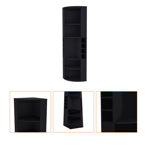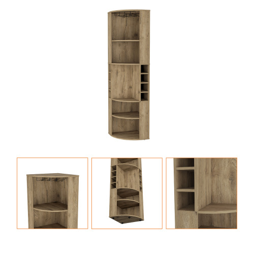 Product Name: FM FURNITURE Clifton Corner Bar Cabinet, with 5 shelves,Cup Hanger and Eight Built-in Wine Rack,Macadamia
