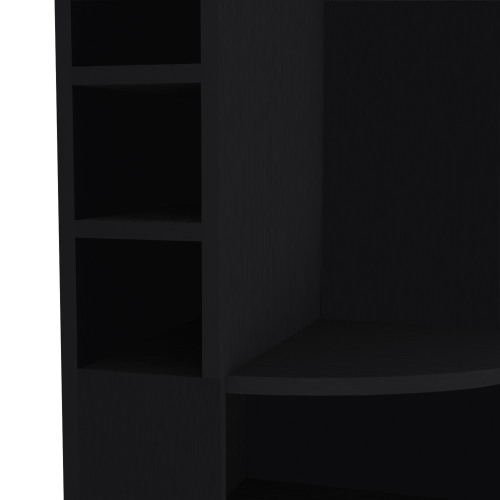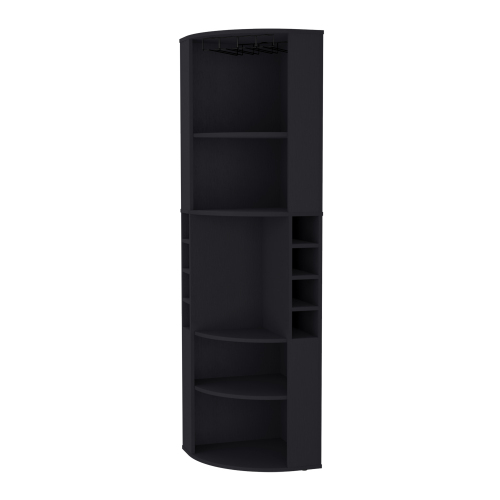 FM FURNITURE Clifton Corner Bar Cabinet, with 5 shelves,Cup Hanger and Eight Built-in Wine Rack,Macadamia