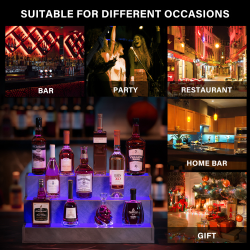 Product Name: LED Lighted Liquor Bottle Display Shelf, 37 Inch Bar Display Shelf, DIY Illuminated Bottle Shelf with App & Remote Control, 2 Step Freestanding Holding Bottles for Home Bar, Party, Grey