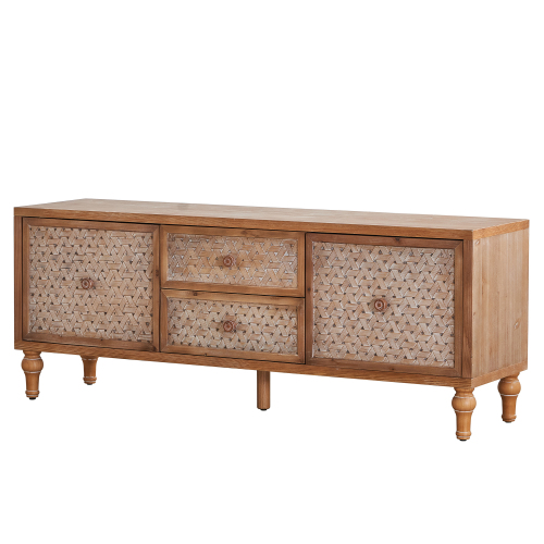 Product Name: Rattan TV Stand for TVs, Wood TV Stand Mid Century Distressed TV Stand TV Media Console with Drawer and Door, Boho Entertainment Center for Living Room