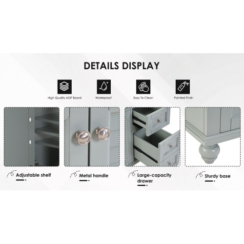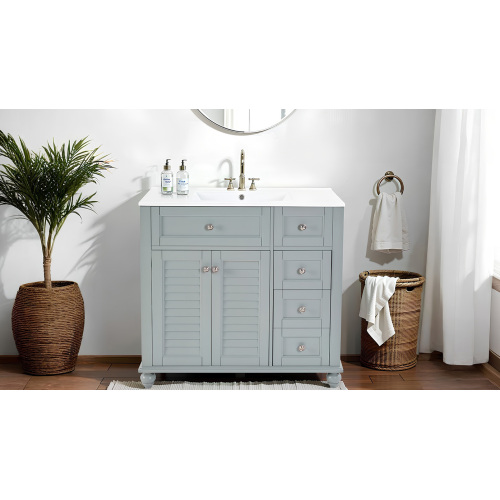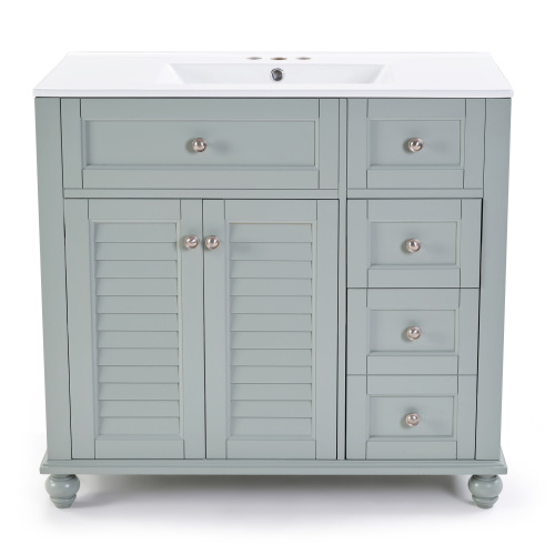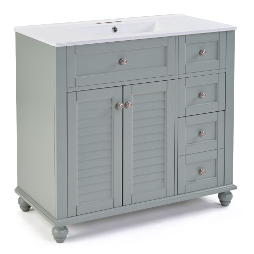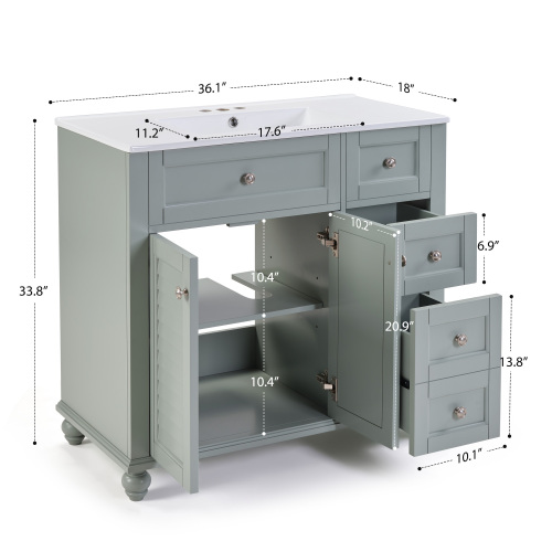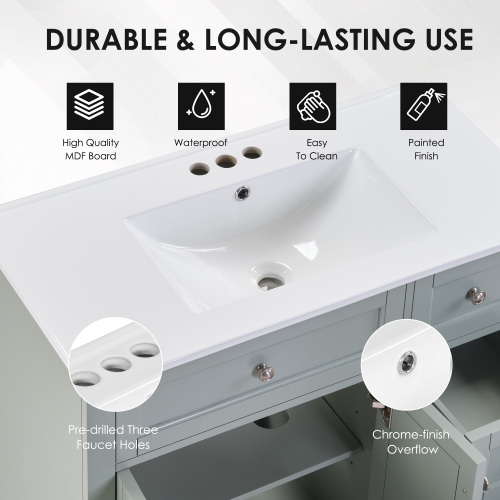 Product Name: 36" Blue Grey Bathroom Vanity with Ceramic Sink - Soft-Close Drawers, Solid Wood Frame, Multi-Organizer Storage , 92x47x86cm