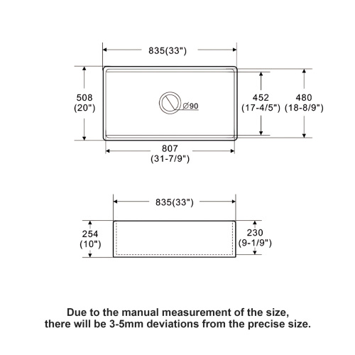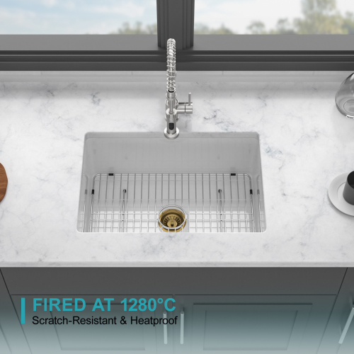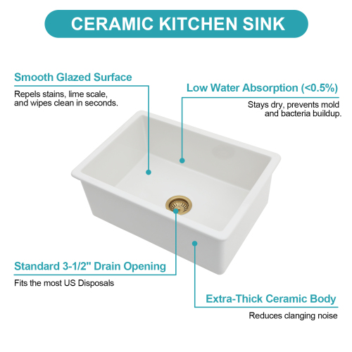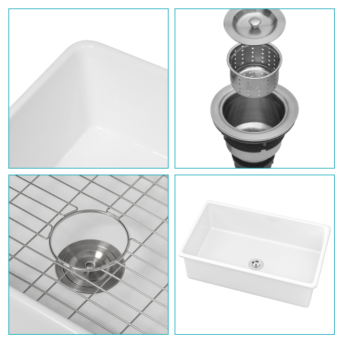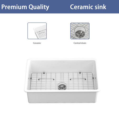 Product Name: 32" Undermount Single Bowl Ceramic Kitchen Sink - Dual Mount White Ceramic Rectangular Deep Single Bowl Sink Basin