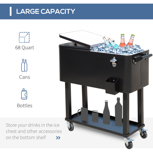 Product Name: Outsunny 80 QT Rolling Cooling Bins Ice Chest on Wheels Outdoor Stand Up Drink Cooler Cart for Party, Black