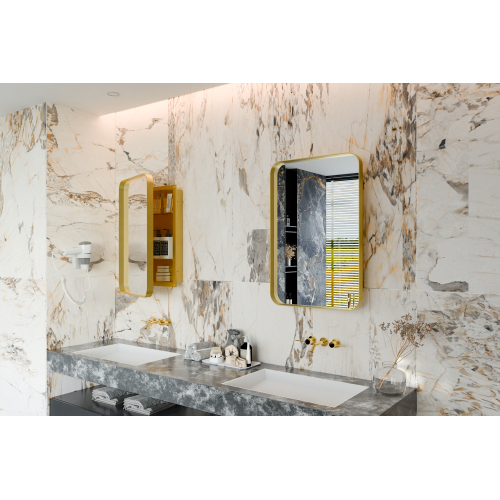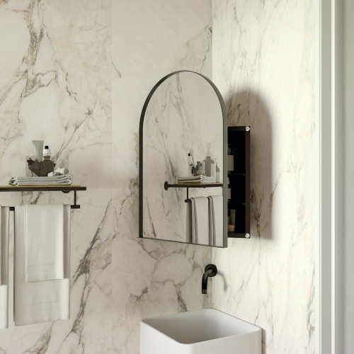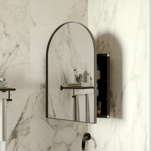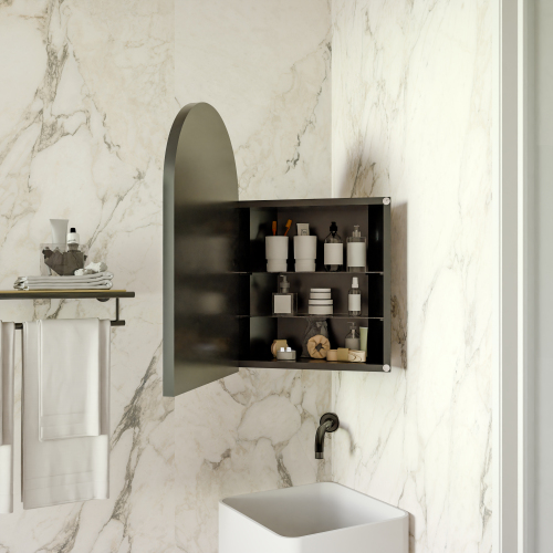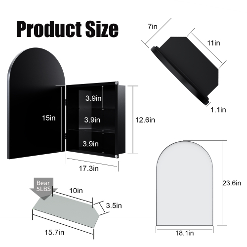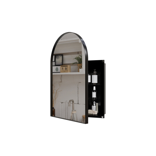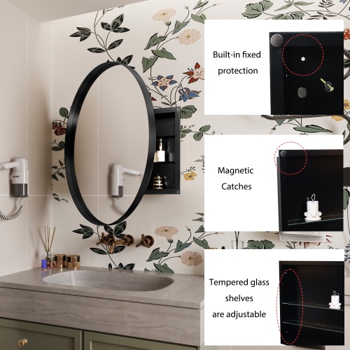 Product Name: 16x24 Inch Recessed Black Metal Framed Medicine Cabinet with Mirror and Adjustable Shelves Black Wall Mirror with Storage for Bathroom