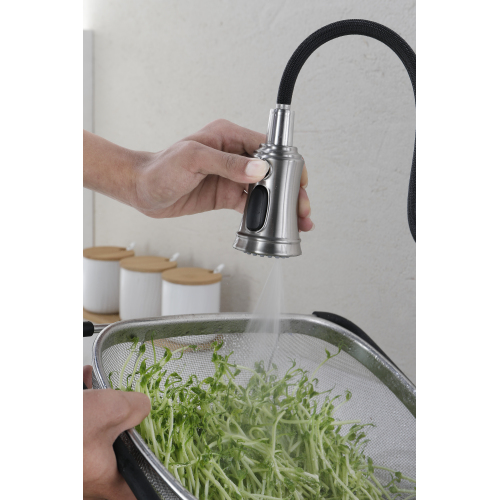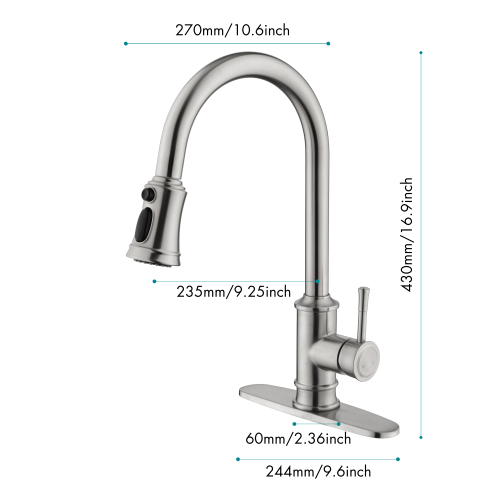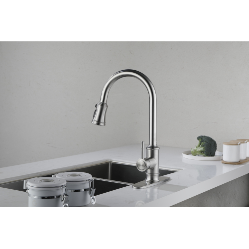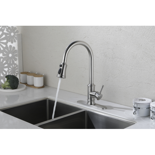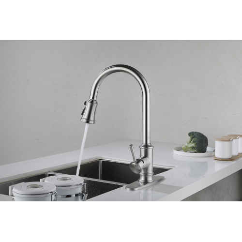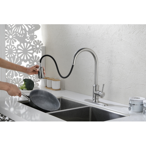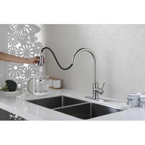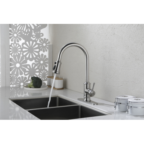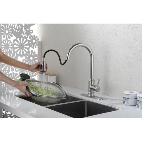 Product Name: Single Handle High Arc Brushed Nickel Pull Out Kitchen Faucet, Single Level Stainless Steel Kitchen Sink Faucets with Pull Down Sprayer