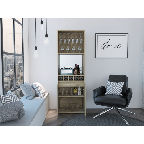 Product Name: Redding Bar Cabinet, One Cabinet, Interior Shelves, Five Bottle Cubbies, Two Shelves