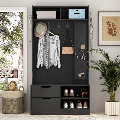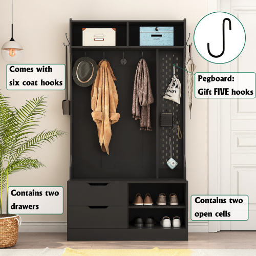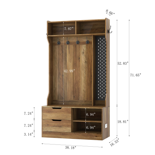 Product Name: Hall Tree with 6 Hooks,Coat Hanger, Entryway Bench, Storage Bench,for Entrance, Hallwa,brown