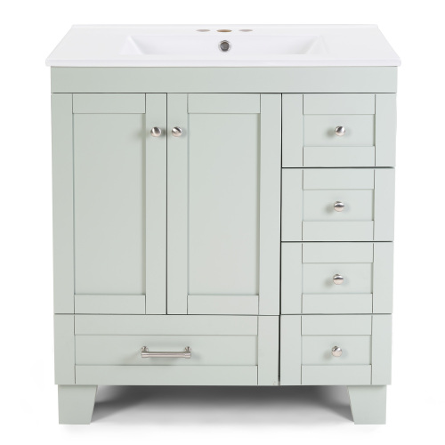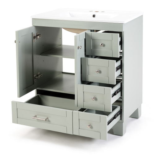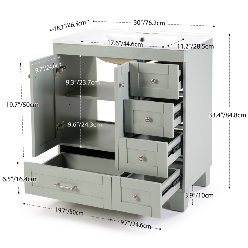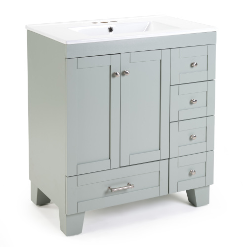 Product Name: 30" Blue Grey Bathroom Vanity with Ceramic Sink - Soft-Close Drawers, Solid Wood Frame, Multi-Organizer Storage ,76x47x85cm