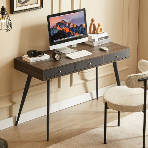 Product Name: Mid Century Desk with USB Ports and Power Outlet, Modern Writing Study Desk with Drawers, Multifunctional Home Office Computer Desk Black