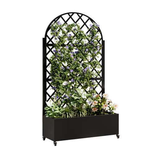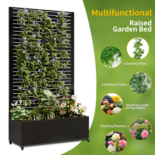 Product Name: Metal Planter Box with Trellis Raised Garden Bed with 4 wheelsTrellis & Privacy Screen for Climbing Plants, Vegetables, Vines