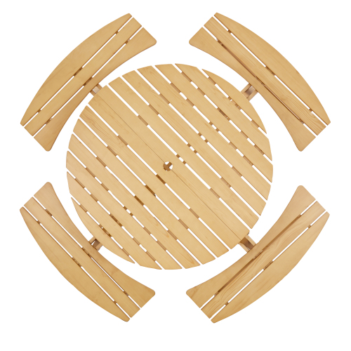 Product Name: 8-Person Outdoor Round Picnic Table Set with 4 Built-in Benches & Umbrella Hole - Perfect for Garden, Backyard, Porch & Patio - Natural Wood