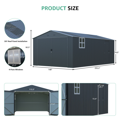 Product Name: 13x20FT Outdoor Storage Shed, Large Metal Garage Shed for Car, Truck, Bike, Lawnmower, Backyard Tool