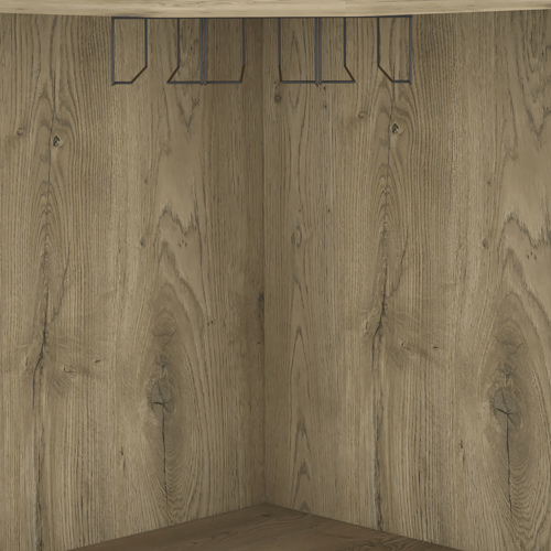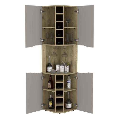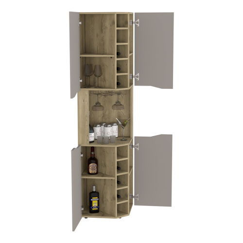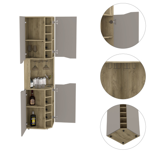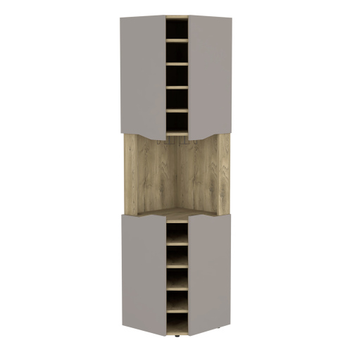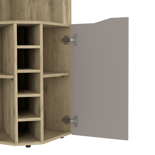 Product Name: Obregon Corner Bar Cabinet, Ten Built-in Wine Rack, Single Door Macadamia / Taupe