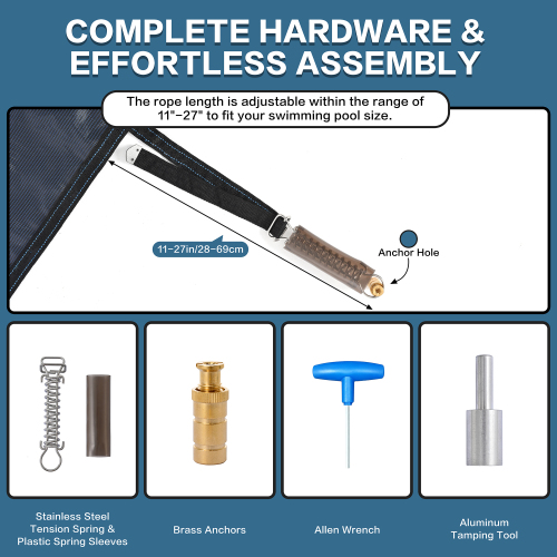 Product Name: Swimming Pool Safety Cover, Fits 16x32ft Rectangular underground and Inground Swimming Pools, Triple Stitched High Strength Mesh PP Abrasion Resistant Installation Hardware Included,Blue Mesh