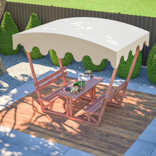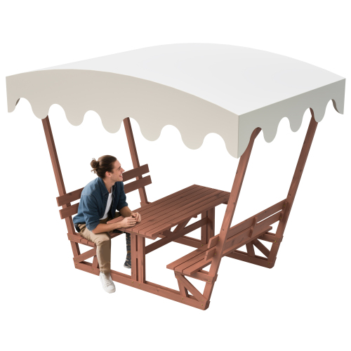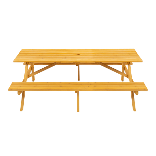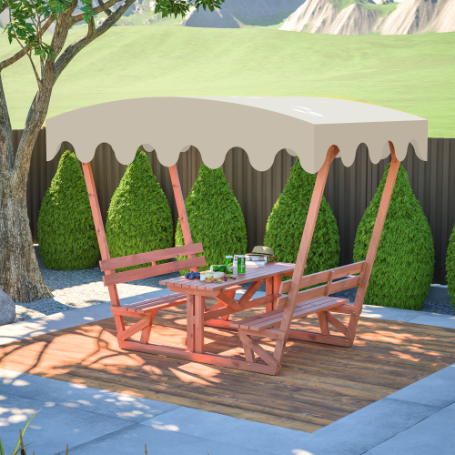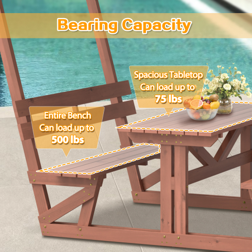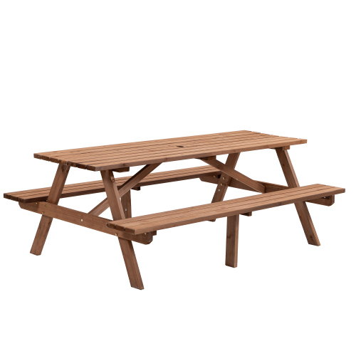 Product Name: 6-Person Circular Outdoor Wooden Picnic Table for Patio, Backyard, Garden, DIY w/ 3 Built-in Benches, 1720lb Capacity - Brown