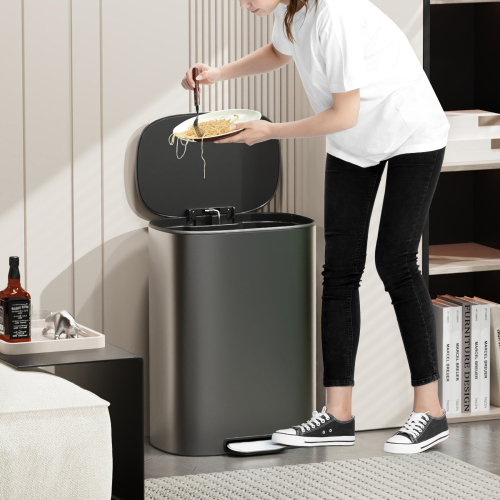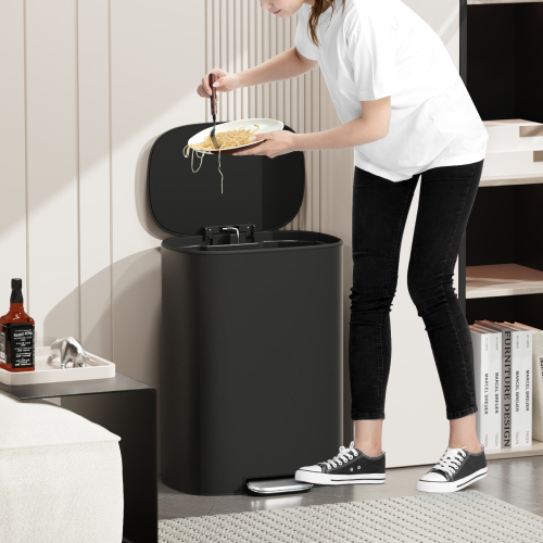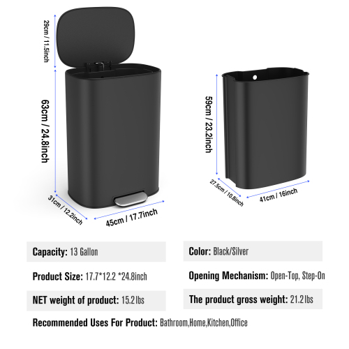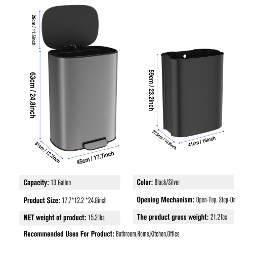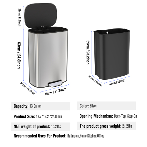Product Name: 13 Gallon 50L Kitchen Foot Pedal Operated Soft Close Trash Can - Stainless Steel Ellipse Bustbin - White
