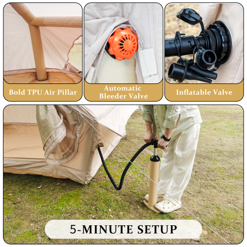 Product Name: Inflatable Tent With Pump,Glamping Tents For 4-6 Person, Easy Setup 4 Season Waterproof Outdoor Tent,Waterproof Luxury Glamping Tent with 12 Mesh Window