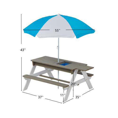 Product Name: Wooden Kids Picnic Table, Sand and Water Table with Umbrella, Activity Table for Outdoor Backyard Patio Play