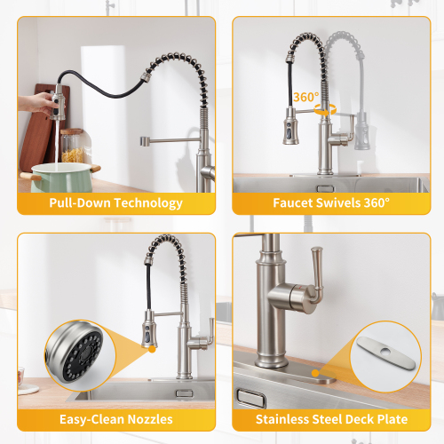 Bothwa Home 18.83" CUPC Certified Pull-down Kitchen Faucet (Brushed Nickel Finish)