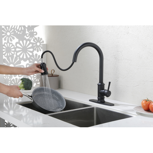 3-in-1 Kitchen Faucet with Press-Type Glass Rinser, High-Arc Pull-Down Sprayer Faucet, 3 Function Spray Mode, Matte Black Finish, for Modern Kitchen Sink