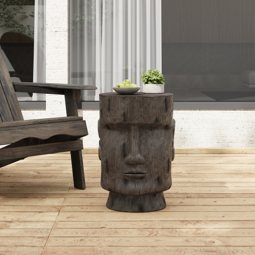 Outdoor Side Table,Easter Island Moai Statue Pedestal End Table Stool,For Home Patio Deck Sunroom Garden Balcony Yard Lawn,Light Grey Color