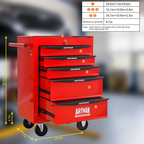 Product Name: Rolling Metal Tool Chest with 4 Drawers, 20" 4-Drawer Tool Chest Cabinet with Ball Bearing Drawer Slides, Steel Tool Storage Box Organizer -BLACK&RED