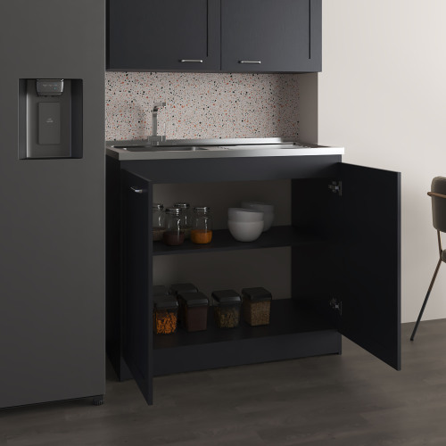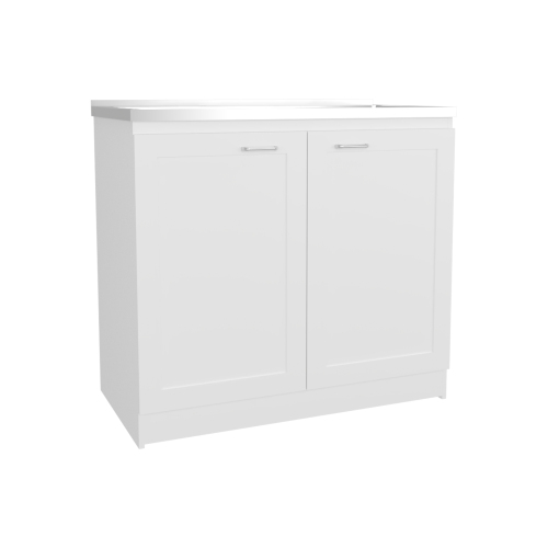 Product Name: Zurich 39" Wide Utility Sink, Base Cabinet Two-Door Cabinet With Two Shelves, Stainless Steel Sink, Laundry Room, Garage Sink, Light Gray