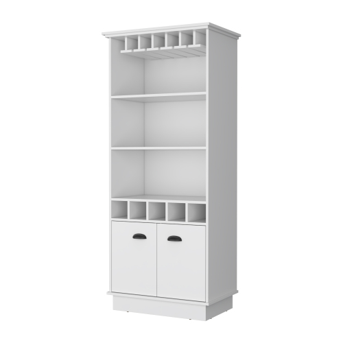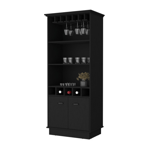 FM FURNITURE Sophia Bar Cabinet with Glassware Rack and Five Bottle Racks, Black
