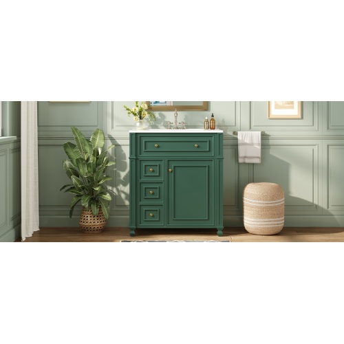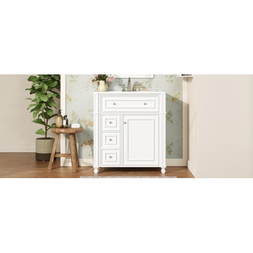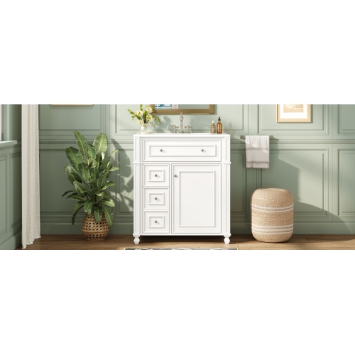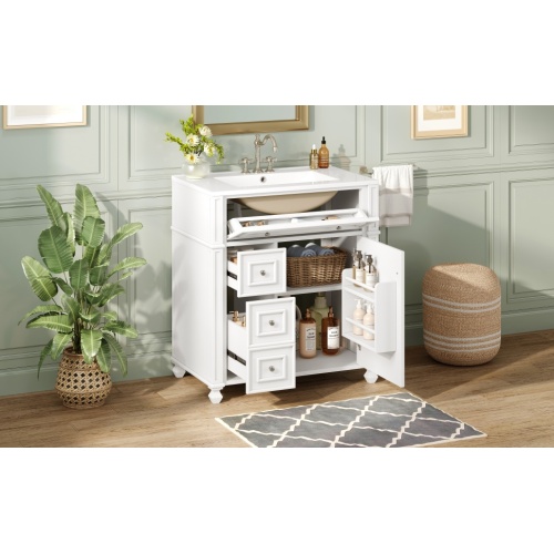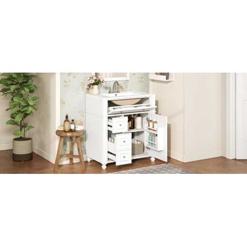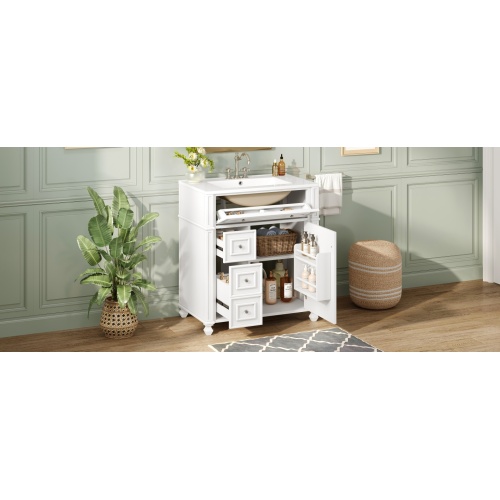 Bathroom Vanity Cabinet with Ceramic Sink Basin, 30 Inch, Storage Cabinet with Soft Close Doors and Door Organizer
