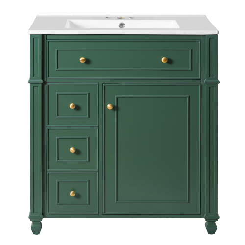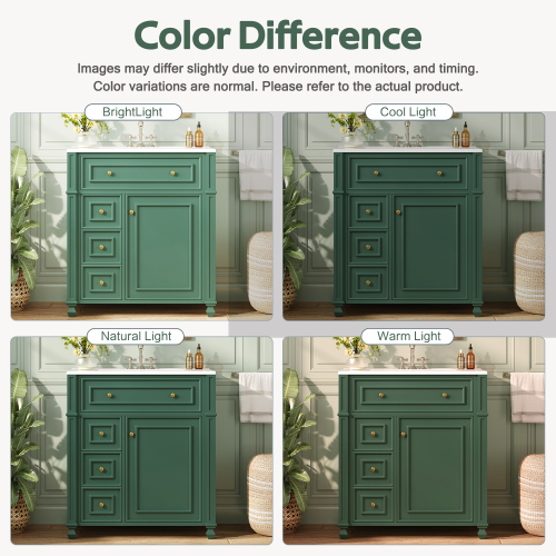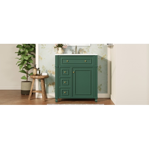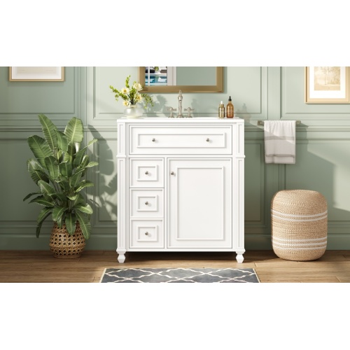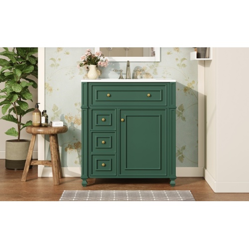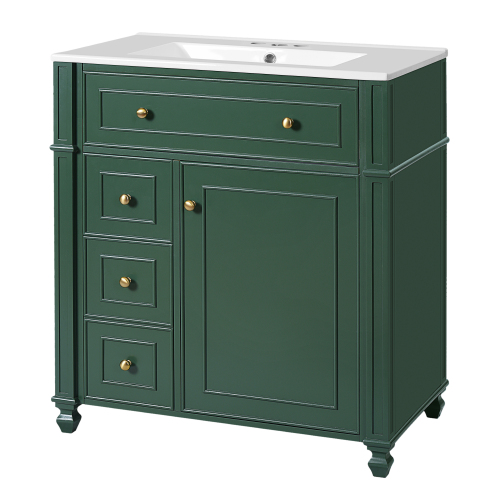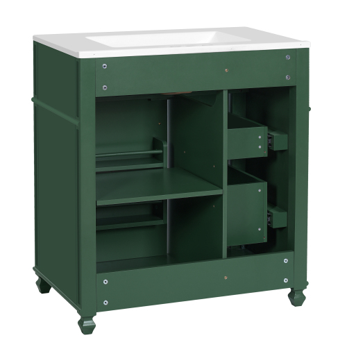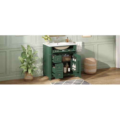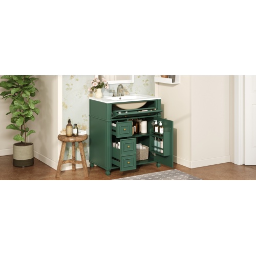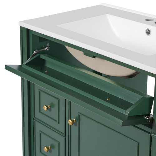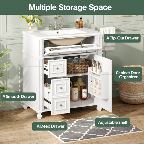 • Bathroom Vanity Cabinet with Ceramic Sink Basin, 30 Inch, Storage Cabinet with Soft Close Doors and Door Organizer