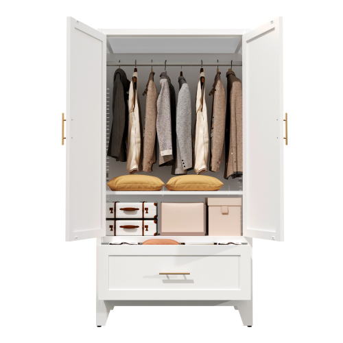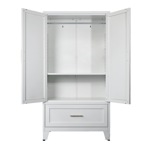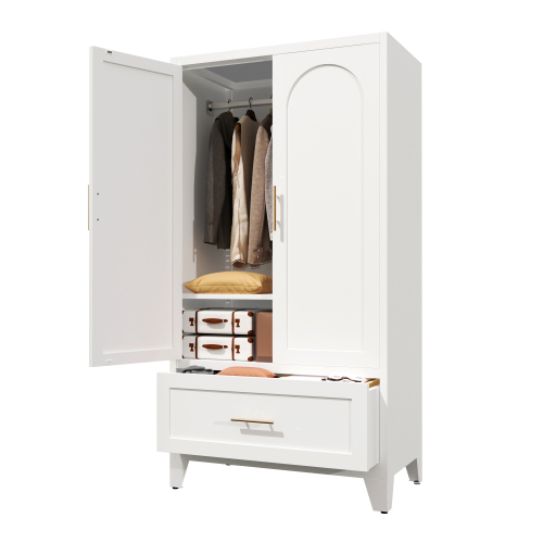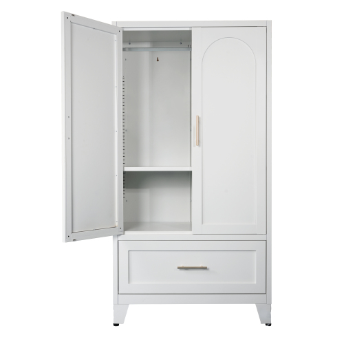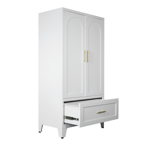 60" Tall Metal Wardrobe Cabinet with 1 Drawer and Hanging Rod, 2 Doors Wardrobe Closet with Shelf for Bedroom, Office, Laundry Room,Entryway ,Foyer,Guesthouse (White)