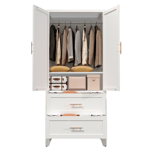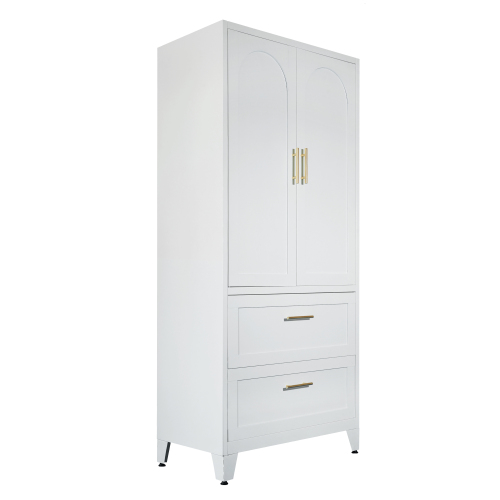 Product Name: 60" Tall Metal Wardrobe Cabinet with 1 Drawer and Hanging Rod, 2 Doors Wardrobe Closet with Shelf for Bedroom, Office, Laundry Room,Entryway ,Foyer,Guesthouse (White)