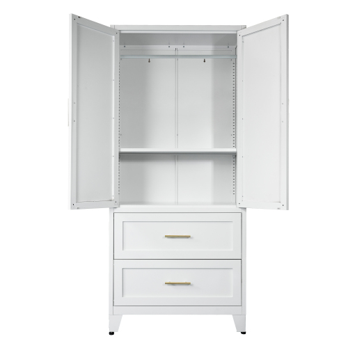 • 60" Tall Metal Wardrobe Cabinet with 1 Drawer and Hanging Rod, 2 Doors Wardrobe Closet with Shelf for Bedroom, Office, Laundry Room,Entryway ,Foyer,Guesthouse (White)