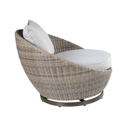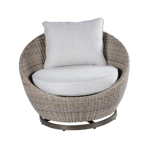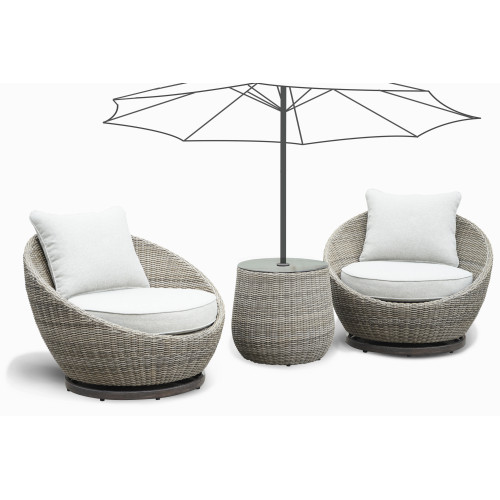 • Cozy Outdoor Set - Swivel Woven Chairs, Side Table - All-Weather Resin Wicker, Powder-Coated Aluminum, Fully Assembled