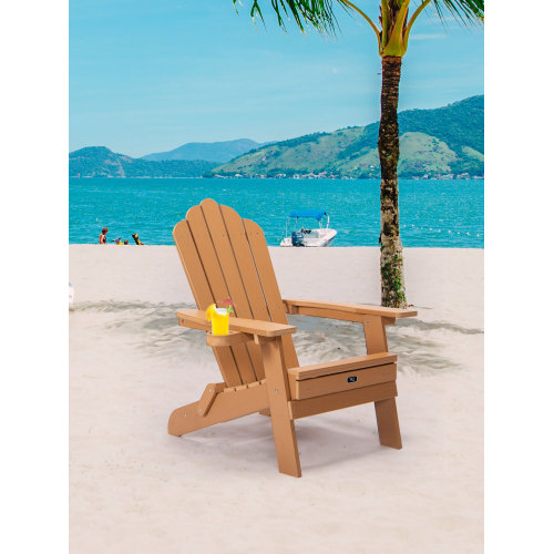 • TALE Folding Adirondack Chair with Pullout Ottoman with Cup Holder, Oversized, Poly Lumber, for Patio Deck Garden, Backyard Furniture, Easy to Install,BROWN. Ban on Amazon