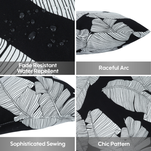• 2 Pack Outdoor Throw Pillows, Waterproof & Fade-Resistant Patio Cushions for Garden, Porch, Poolside Furniture - Soft & Comfortable Decorative Pillow Covers (18x18 Inch,Black Leaf )