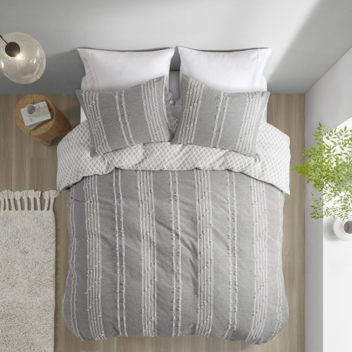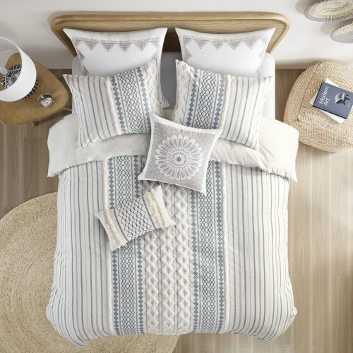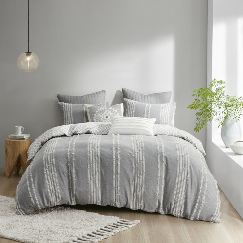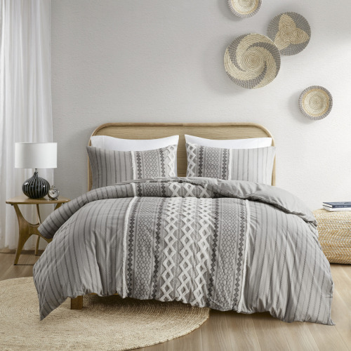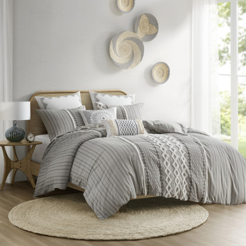 Product Name: King/Cal King Cotton Printed Duvet Cover Set with Chenille