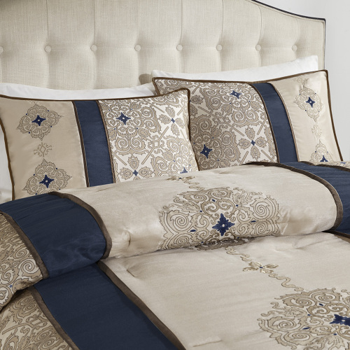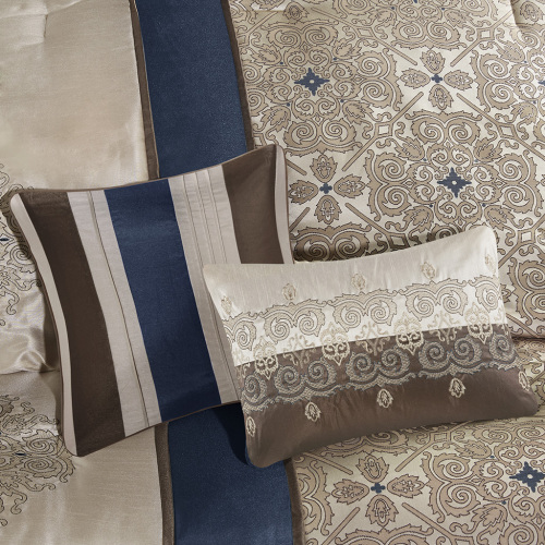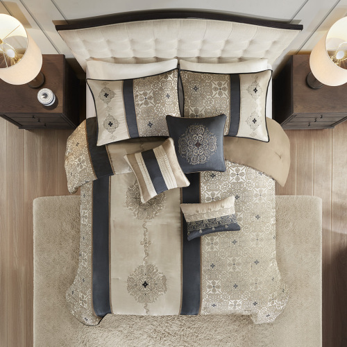 Product Name: Queen 7 Piece Jacquard Comforter Set with Throw Pillows