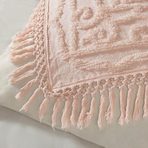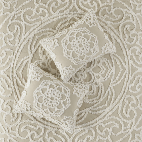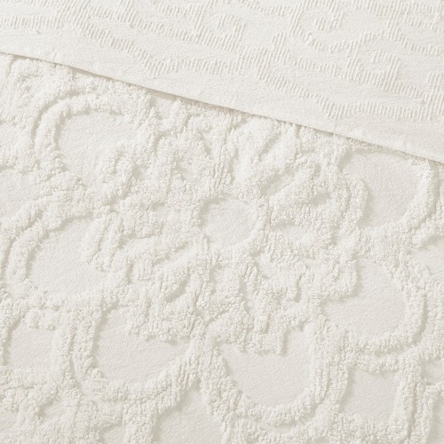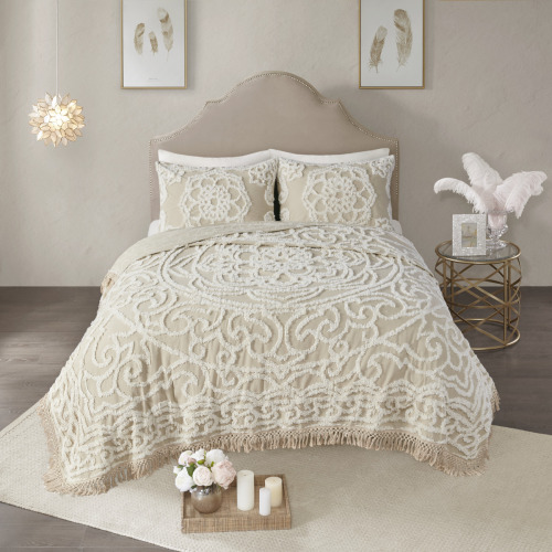 Product Name: Tufted Cotton Chenille Medallion Fringe Coverlet Mini Set Off-White Full/Queen