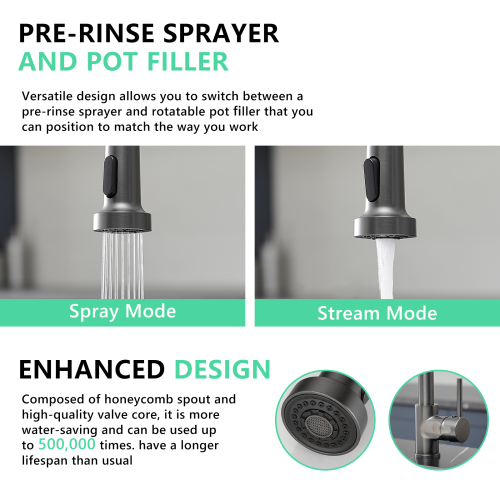 • LED Commercial Kitchen Faucet with Pull Down Sprayer, Single Handle Single Lever Kitchen Sink Faucet
