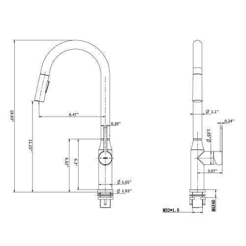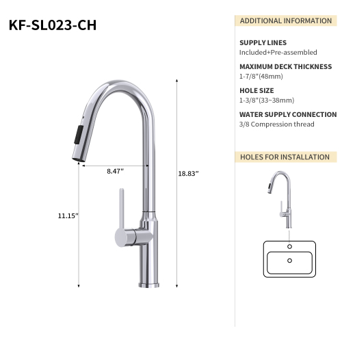 Product Name: Bothwa Home 18.83" CUPC Certified Pull-down Kitchen Faucet (Brushed Nickel Finish)