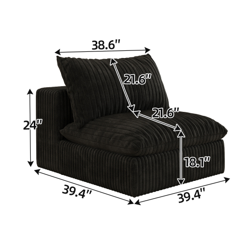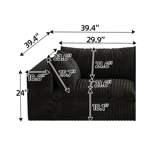 Product Name: Cloud Sofa,Corduroy Fabric,Deep Seat Couches,Double-layer design,Removable Cushion,No Assembly, DIY Combination for Living room, Bedroom,Conference room ,Apartment,Black