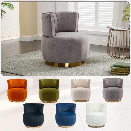 • 360 Degree Swivel Cuddle Barrel Accent Sofa Chairs, Round Armchairs with Wide Upholstered, Fluffy Velvet Fabric Chair for Living Room, Bedroom, Office, Waiting Rooms