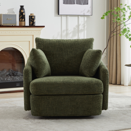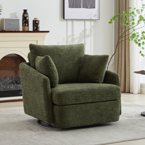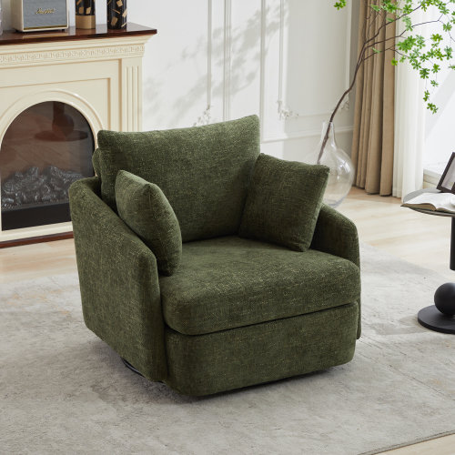 • 40.55"W Swivel Accent Chair With 2 Thorw Pillows 360 Degree Swivel Round Sofa Modern Oversized Arm Chair Cozy Club Chair for Bedroom Living Room Lounge Hotel,Green Chenille