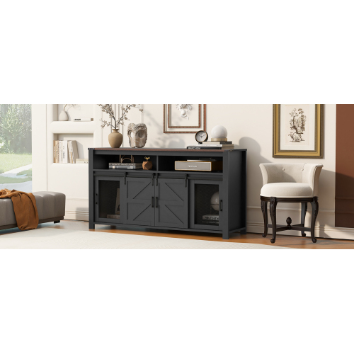 • U_STYLE 59.3''Sideboard with Sliding Barn Door and Mesh Panels,Farmhouse Buffet with Open Storage,Suitable for Living Room, Hallway, Balcony,Kitchen, Office