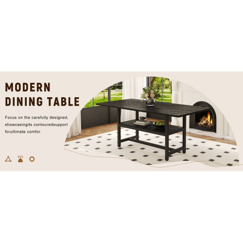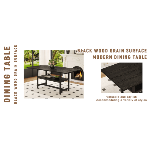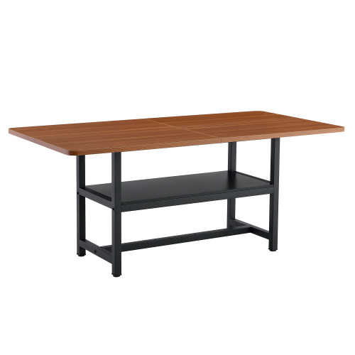 Product Name: 71 inch long fashionable walnut grain dining table, a practical choice to add color to the home.Making it perfect for both family gatherings and friend parties.Black Sprayed Metal Table Legs.