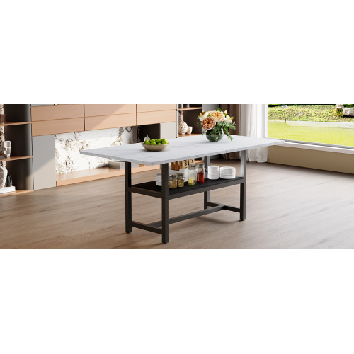 71 inch long fashionable walnut grain dining table, a practical choice to add color to the home.Making it perfect for both family gatherings and friend parties.Black Sprayed Metal Table Legs.