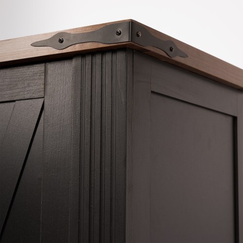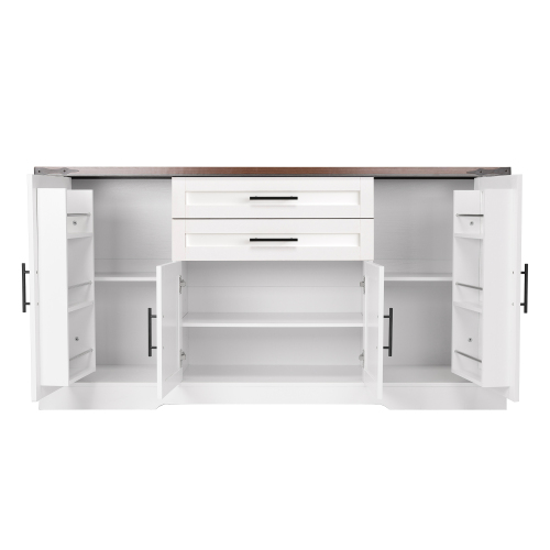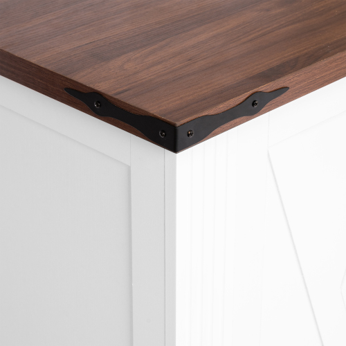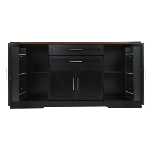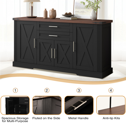 • 63" Farmhouse Barn Door Storage Cabinet with 2 Drawers & Door Rack, Large Buffet Table Coffee Bar Cabinets with Adjustable Shelves for Kitchen, Living Room, Entryway, Dining Room, Black