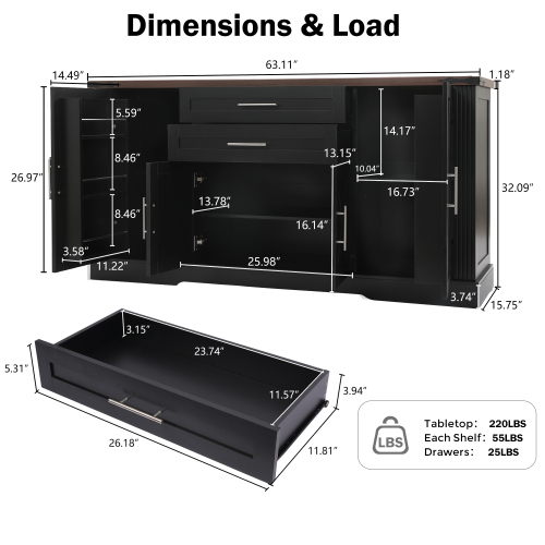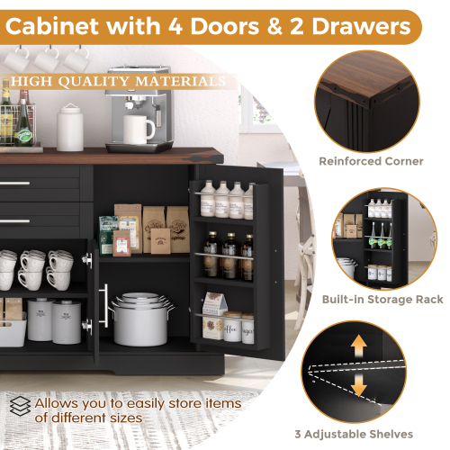 Product Name: 63" Farmhouse Barn Door Storage Cabinet with 2 Drawers & Door Rack, Large Buffet Table Coffee Bar Cabinets with Adjustable Shelves for Kitchen, Living Room, Entryway, Dining Room, Black