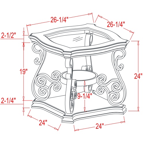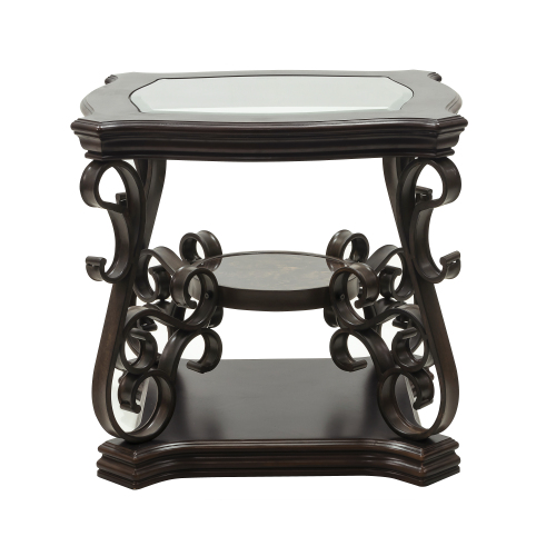 Product Name: End table, Glass table top, MDF W/marble paper middle shelf, powder coat finish metal legs. (26.3"Lx26.3"Wx24"H)